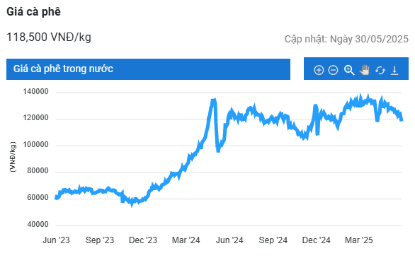 Giá cà phê hôm nay (30/5) trên các sàn giao dịch tiếp tục chuỗi giảm giá kéo dài suốt tháng qua. Theo nhà phân tích kỹ thuật Want Tao của Reuters, giá arabica có thể tiếp tục giảm xuống mức 3,4 - 3,46 USD/pound. Ở trong nước, giá cà phê cũng được điều chỉnh về dưới mốc 119.000 đồng/kg.