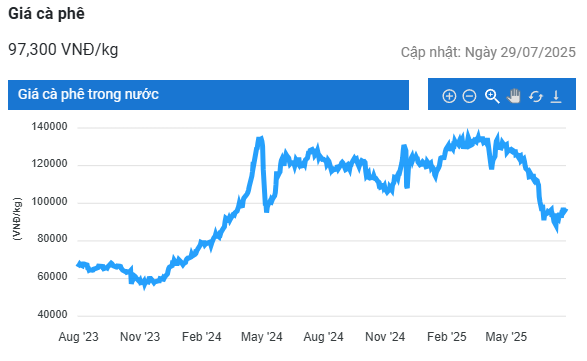 Còn tại Lâm Đồng, giá cà phê hôm nay tăng 500 đồng/kg, hiện được thu mua ở mức 97.300 đồng/kg.