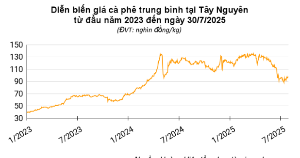 Cụ thể, giá cà phê tại Đắk Nông tăng 500 đồng/kg, lên mức 98.000 đồng/kg.