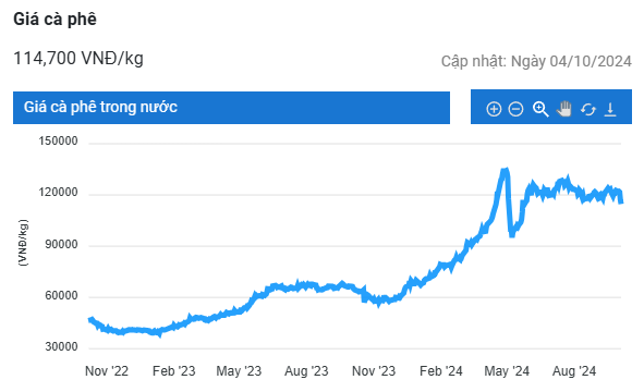 Tính đến sáng ngày 7/10, giá cà phê robusta hợp đồng giao tháng 11 được giao dịch ở mức 5.067 USD/tấn; hợp đồng giao tháng 1/2025 đạt 4.859 USD/tấn.