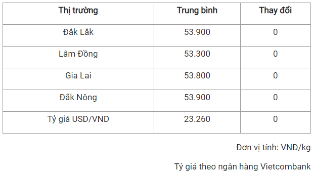 Cùng thời điểm khảo sát, hai tỉnh Đắk Lắk và Đắk Nông ghi nhận mức giao dịch là 53.900 đồng/kg - cao nhất trong các địa phương được khảo sát.