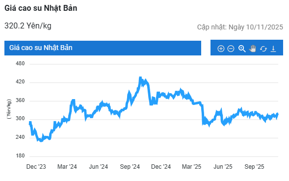 Giá cao su Nhật Bản hồi phục nhờ Trung Quốc nới lỏng hạn chế xuất khẩu chip Nexperia và đồng yên suy yếu cũng hỗ trợ đà tăng của giá.