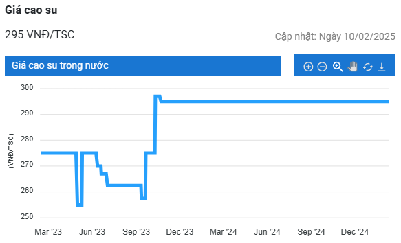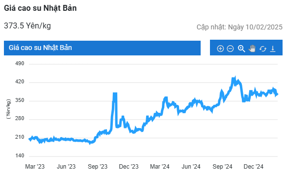 Kết thúc phiên giao dịch 10/2, giá cao su RSS3 kỳ hạn tháng 3/2025 tại Sở Giao dịch Osaka (OSE) Nhật Bản giảm 0,4% (1,4 yen/kg). Tương tự tại Thái Lan, giá cao su giảm 0,8% (0,7 baht/kg) về mức 81,8 baht/kg; còn Trung Quốc giảm 0,9% (165 CNY/kg) về mức 17.275 CNY/kg.