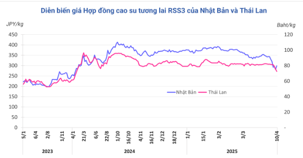 Kết thúc phiên giao dịch 10/4, tại Nhật Bản, giá cao su kỳ hạn tháng 4 đảo chiều bất ngờ tăng 6,2% (17.4 yên) lên mức 299,1 yen/kg. Ở Trung Quốc, giá cao su cũng bật tăng 2,2% (315 nhân dân tệ) lên mức 14.425 nhân dân tệ/tấn; trong khi tại Thái Lan, giá cao su kỳ hạn tháng 4 giảm tiếp 4,1% (3,13 baht/kg) về mức 72,47 baht/kg.