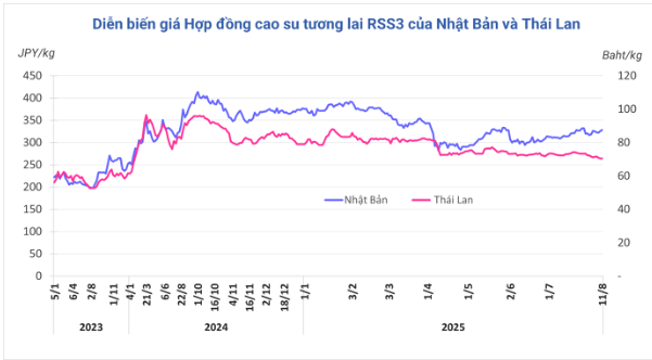 Mở cửa phiên giao dịch 11/8, tại Trung Quốc, giá cao su kỳ hạn tháng 8 trên Sàn Thượng Hải (SHFE) tăng 0,2% (30 nhân dân tệ) lên mức 14.590 nhân dân tệ/tấn. Tại Thái Lan, giá cao su kỳ hạn tháng 8 gần như đi ngang mức 70,45 baht/kg. Trong khi đó, thị trường Nhật Bản (OSE) tăng 0,6% (2 yen) lên mức 328 yen/kg.