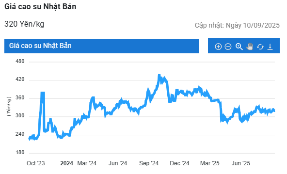 Kết thúc phiên giao dịch 10/9, tại Trung Quốc, giá cao su kỳ hạn tháng 10 trên Sàn Thượng Hải (SHFE) giảm 0,79% (120 nhân dân tệ) về mức 15.050 nhân dân tệ/tấn. Tại Thái Lan, giá cao su kỳ hạn tháng 10 tăng 0,4% (0,27 baht) lên mức 68,69 baht/kg. Tại thị trường Nhật Bản (OSE), giá cao su giảm 0,4% (1,3 yên) về mức 321,5 yen/kg.