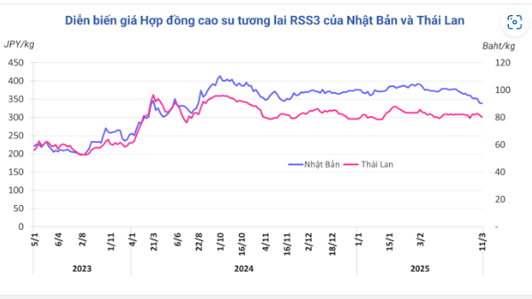 Giá cao su Nhật Bản tiếp tục rơi xuống mức đáy của 7 tháng qua, do đồng yên mạnh lên, trong khi lo ngại giảm phát tại Trung Quốc gia tăng.