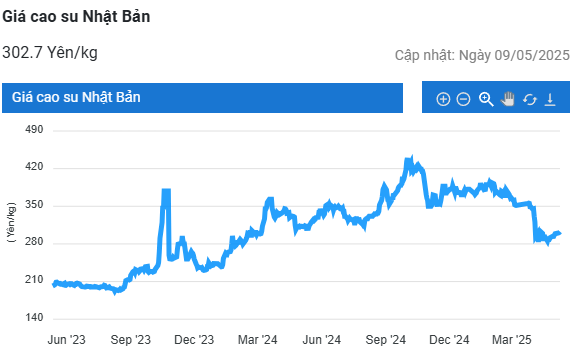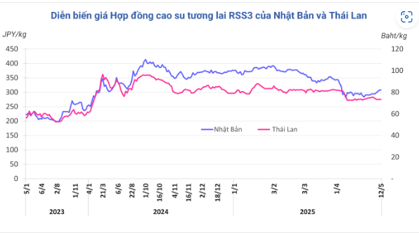 Mở cửa phiên giao dịch 12/5, tại Trung Quốc, giá cao su kỳ hạn tháng 5 trên Sàn Thượng Hải tăng 0,2% (25 nhân dân tệ) lên mức 14.505 nhân dân tệ/tấn. Tương tự, giá cao su kỳ hạn tháng 5 trên Sàn OSE ở Nhật Bản tăng 0,2% (0,7 yen/kg) lên mức 308,2 yen/kg.