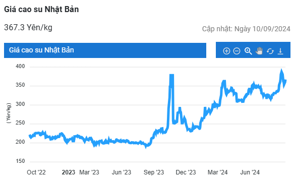 Trên sàn giao dịch hàng hóa Tokyo (TOCOM) – Nhật Bản, giá cao su RSS 3 hợp đồng giao tháng 9 tăng nhẹ 0,3%, lên mức 363,1 yen/kg; hợp đồng giao tháng 1/2025 ở mức 355,9 yen/kg.