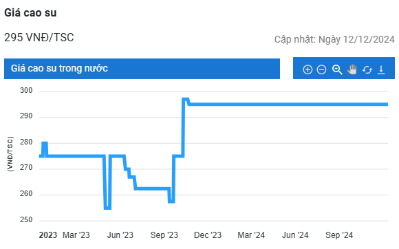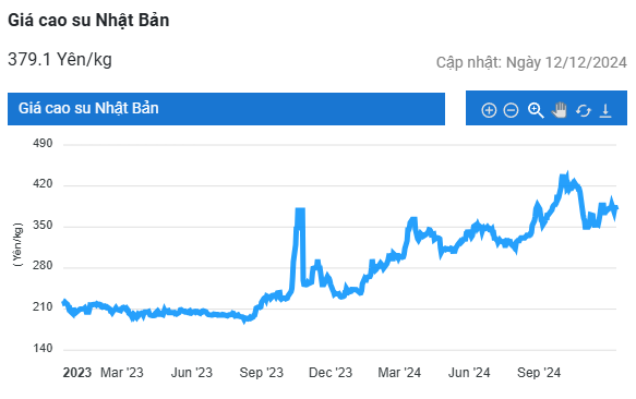 Chốt phiên giao dịch ngày 13/12, giá cao su RSS 3 giao tháng 3/2025 tại Sở Giao dịch Osaka (OSE) Nhật Bản giảm thêm 1,5% (5,7 yen/kg) so với phiên giao dịch trước, xuống còn 366,2 yen/kg.