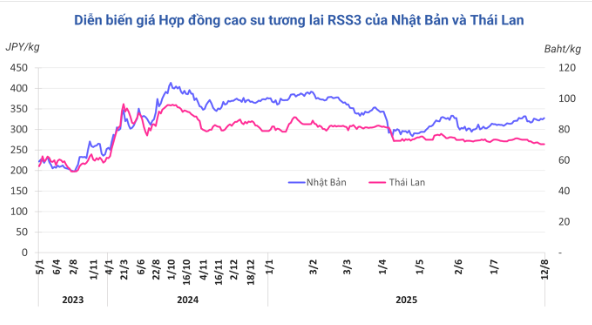 Kết thúc phiên giao dịch 12/8, tại Trung Quốc, giá cao su kỳ hạn tháng 8 trên Sàn Thượng Hải (SHFE) tăng 0,1% (20 nhân dân tệ) lên mức 14.730 nhân dân tệ/tấn. Tại Thái Lan, giá cao su kỳ hạn tháng 8 đi ngang mức 70,47 baht/kg. Tương tự, thị trường Nhật Bản (OSE) tăng 1% (3,1 yên) lên mức 327,6 yen/kg.