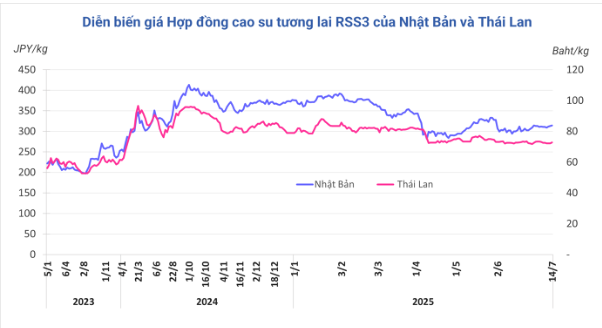 Mở cửa phiên giao dịch 14/7, giá cao su kỳ hạn tháng 8 trên Sàn OSE ở Nhật Bản tăng 0,3% (1 yen) lên mức 314,2 yen/kg. Ở Trung Quốc, giá cao su kỳ hạn tháng 8 trên Sàn Thượng Hải (SHFE) tăng 0,4% (64 nhân dân tệ) lên mức 14.389 nhân dân tệ/tấn. Tại Thái Lan, giá cao su kỳ hạn tháng 8 tăng 0,7% (0,54 baht) lên mức 72,8 baht/kg.