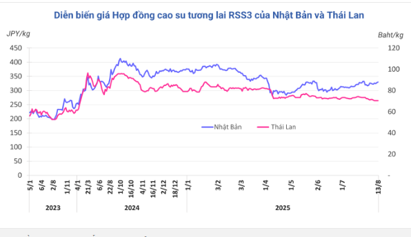 Kết thúc phiên giao dịch 13/8, tại Trung Quốc, giá cao su kỳ hạn tháng 9 trên Sàn Thượng Hải (SHFE) tăng 0,5% (70 nhân dân tệ) lên mức 14.850 nhân dân tệ/tấn. Tại Thái Lan, giá cao su kỳ hạn tháng 8 nhích nhẹ lên mức 70,48 baht/kg. Tương tự, thị trường Nhật Bản (OSE) tăng 0,7% (2,4 yên) lên mức 330 yen/kg.