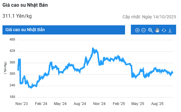 Kết thúc phiên giao dịch 14/10, tại Thái Lan, giá cao su kỳ hạn tháng 11 giảm 1,8% (1,24 baht) về mức 65,85 baht/kg. Tại thị trường Nhật Bản (OSE), giá cao su giảm 2,5% (7,9 yen) xuống mức 303 yen/kg. Tại Trung Quốc, giá cao su giảm 1% (135 nhân dân tệ) về mức 14.060 nhân dân tệ/tấn.