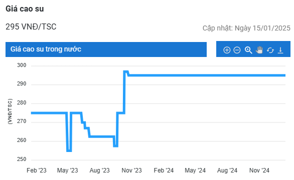 Kết thúc phiên giao dịch ngày 15/1, giá cao su RSS3 giao tháng 3/2025 tại Sở Giao dịch Osaka (OSE) Nhật Bản ghi nhận 384.6 yen/kg, tăng mạnh 2,4% (9 yen/kg) so với hôm trước và ghi nhận mức cao nhất trong 2,5 tháng qua.