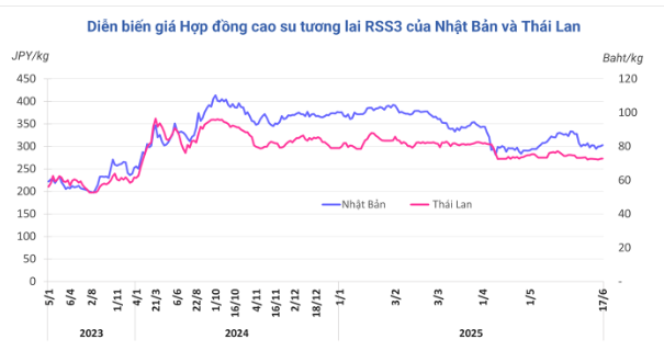 Kết thúc phiên giao dịch 17/6, giá cao su kỳ hạn tháng 6 trên Sàn OSE ở Nhật Bản tăng 1% (2,9 yen) lên lên mức 302,9 yen/kg. Ở Trung Quốc, giá cao su kỳ hạn tháng 7 trên Sàn Thượng Hải (SHFE) tăng 0,11% (15 nhân dân tệ) lên mức 13.820 nhân dân tệ/tấn. Tại Thái Lan, giá cao su kỳ hạn tháng 7 tăng 0,1% (0,09 baht) lên mức 72,73 baht/kg.