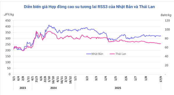 Kết thúc phiên giao dịch 17/9, tại Trung Quốc, giá cao su kỳ hạn tháng 10 trên Sàn Thượng Hải (SHFE) giảm 0,6% (90 nhân dân tệ) về mức 15.015 nhân dân tệ/tấn. Tại Thái Lan, giá cao su kỳ hạn tháng 10 giảm 0,1% (0,09 baht) lên mức 68,30 baht/kg. Tại thị trường Nhật Bản (OSE), giá cao su giảm 1,2% (4 yên) xuống mức 319,4 yen/kg.