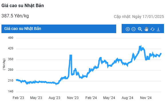 Mở cửa phiên giao dịch ngày 20/1, giá cao su RSS3 giao tháng 3/2025 tại Sở Giao dịch Osaka (OSE) Nhật Bản ghi nhận 385.8 yen/kg, tăng 0,2 yen/kg so với cuối tuần trước.