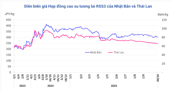 Mở cửa phiên giao dịch 20/10, tại Thái Lan, giá cao su kỳ hạn tháng 11 gần như đi ngang mức 66 baht/kg. Tại thị trường Nhật Bản (OSE), giá cao su giảm 0,3% (1 yen) về mức 302 yen/kg. Tại Trung Quốc, giá cao su giảm 0,4% (50 nhân dân tệ) xuống mức 14.015 nhân dân tệ/tấn.
