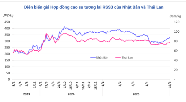 Kết thúc phiên giao dịch 19/5, tại Trung Quốc, giá cao su kỳ hạn tháng 6 trên Sàn Thượng Hải giảm tiếp 0,1% (10 nhân dân tệ) về mức 14.835 nhân dân tệ/tấn. Trong khi đó, giá cao su kỳ hạn tháng 5 trên Sàn OSE ở Nhật Bản tăng 2,8% (9 yen/kg) lên mức 328,9 yen/kg. Tại Thái Lan, giá cao su kỳ hạn tháng 6 tăng 1,2% (0,94 baht) lên mức 77,14 baht/kg.