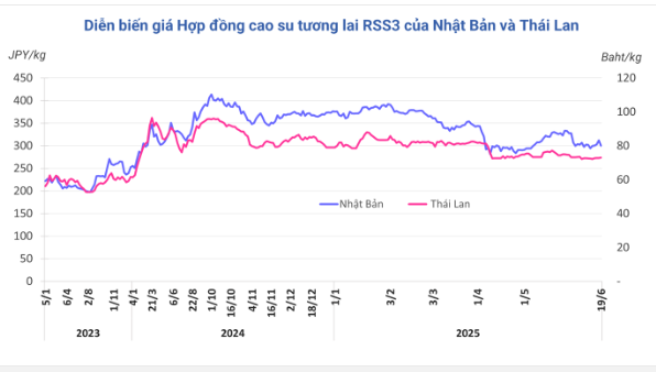 Kết thúc phiên giao dịch 19/6, giá cao su kỳ hạn tháng 6 trên Sàn OSE ở Nhật Bản giảm mạnh 3,8% (11,7 yen) về mức 300,1 yen/kg. Ở Trung Quốc, giá cao su kỳ hạn tháng 7 trên Sàn Thượng Hải (SHFE) giảm 5 nhân dân tệ về mức 13.970 nhân dân tệ/tấn. Tại Thái Lan, giá cao su kỳ hạn tháng 7 tăng 0,3% (0,22 baht) lên mức 73,02 baht/kg.