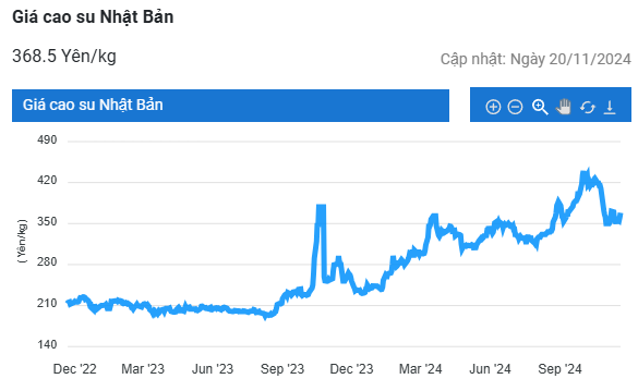 Đóng cửa phiên giao dịch ngày 21/11, giá cao su RSS 3 giao tháng 3/2025 tại Sở Giao dịch Osaka (OSE) Nhật Bản quay đầu giảm 1,8% (6,6 yen/kg) so với phiên giao dịch trước, về mức 360,5 yen/kg.