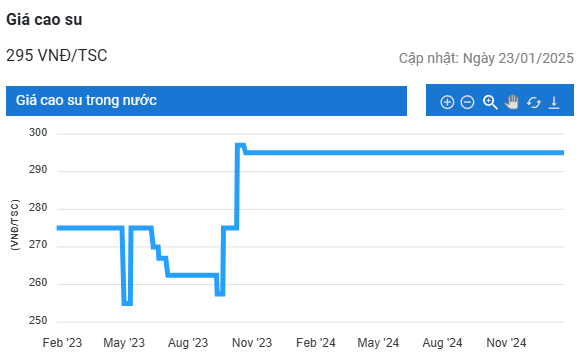 Trên Sàn Giao dịch Hàng hóa Thượng Hải (SHFE) - Trung Quốc, giá cao su tự nhiên hợp đồng kỳ hạn tháng 3/2025 đóng cửa với mức 17,325 CNY/kg, giảm 0,1% (15 CNY/tấn) so với hôm trước.