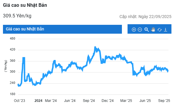 Kết thúc phiên giao dịch 23/9, tại Trung Quốc, giá cao su kỳ hạn tháng 10 trên Sàn Thượng Hải (SHFE) tăng 0,24% (35 nhân dân tệ) lên mức 14.780 nhân dân tệ/tấn. Tại Thái Lan, giá cao su kỳ hạn tháng 10 tăng 1,1% (0,74 baht) lên mức 67,40 baht/kg. Tại thị trường Nhật Bản (OSE), giá cao su đi ngang mức 313,10 yen/kg.