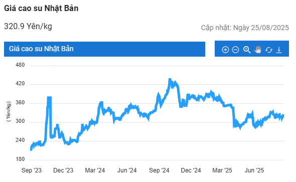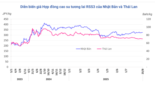 Kết thúc phiên giao dịch 25/8, tại Trung Quốc, giá cao su kỳ hạn tháng 9 trên Sàn Thượng Hải (SHFE) tăng 1,2% (180 nhân dân tệ) lên mức 14.850 nhân dân tệ/tấn. Tại Thái Lan, giá cao su kỳ hạn tháng 9 giảm 0,4% (0,3 baht) về 70,54 baht/kg. Tại thị trường Nhật Bản (OSE), giá cao su tăng 0,2% (0,7 yên) lên mức 324,7 yen/kg.