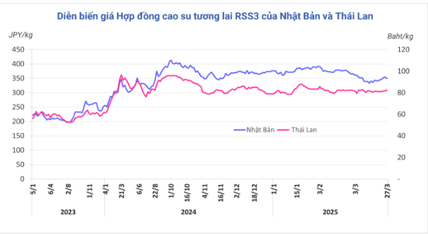 Kết thúc phiên giao dịch 27/3, tại Trung Quốc, giá cao su kỳ hạn tháng 4 trên Sàn Thượng Hải giảm 0,82% (140 nhân dân tệ) về mức 16.845 nhân dân tệ/kg. Tại Thái Lan, giá cao su kỳ hạn tháng 4 tăng 0,7% lên mức 82,37 baht/kg, Nhật Bản giảm 1,4% (4,8 yen) về mức 349 yen/kg.