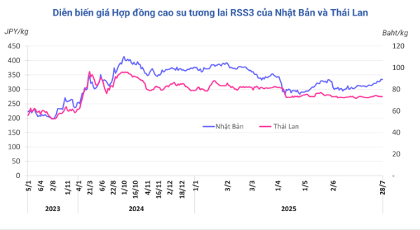 Mở cửa phiên giao dịch 28/7, tại Trung Quốc, giá cao su kỳ hạn tháng 8 trên Sàn Thượng Hải (SHFE) tăng gần như đi ngang mức 15.420 nhân dân tệ/tấn. Tại Thái Lan, giá cao su kỳ hạn tháng 8 cũng đi ngang mức 73,37 baht/kg. Trong khi đó, thị trường Nhật Bản (OSE) giảm nhẹ 0,2% (0,8 yen) về mức 334 yen/kg.