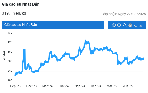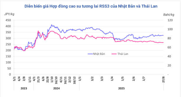 Kết thúc phiên giao dịch 27/8, tại Trung Quốc, giá cao su kỳ hạn tháng 9 trên Sàn Thượng Hải (SHFE) giảm 0,33% (50 nhân dân tệ) về mức 14.915 nhân dân tệ/tấn. Tại Thái Lan, giá cao su kỳ hạn tháng 9 giảm 0,4% (0,28 baht) về mức 70,73 baht/kg. Tại thị trường Nhật Bản (OSE), giá cao su giảm 0,4% (1,2 yên) về mức 323,8 yen/kg.