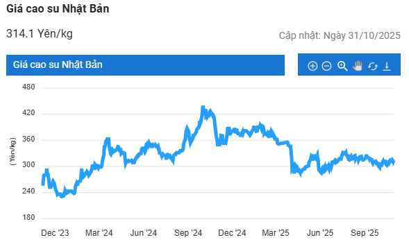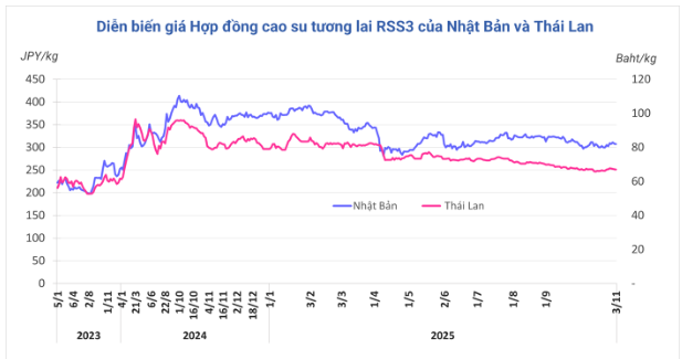 Mở cửa phiên giao dịch 3/11, tại Thái Lan, giá cao su kỳ hạn tháng 12 giảm 0,1% (0,09 baht) xuống mức 67,00 baht/kg. Tại thị trường Nhật Bản (OSE), giá cao su kỳ hạn tháng 12 giảm 0,3% (1 yên) về mức 307 yen/kg. Tại Trung Quốc, giá cao su giảm 0,3% (50 nhân dân tệ) về mức 14.525 nhân dân tệ/tấn.