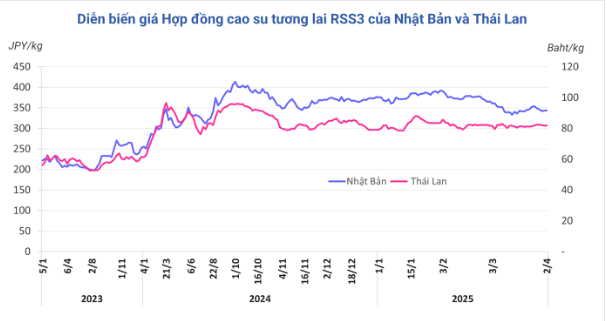 Kết thúc phiên giao dịch 2/4, tại Trung Quốc, giá cao su kỳ hạn tháng 4 trên Sàn Thượng Hải tăng 0,8% (135 nhân dân tệ) lên mức 16.535 nhân dân tệ/kg. Tại Thái Lan, giá cao su kỳ hạn tháng 4 tăng 0,3% (0,2 baht/kg) lên mức 81,88 baht/kg, Nhật Bản giảm 0,1% (0,2 yen/kg) về mức 343,3 yen/kg.