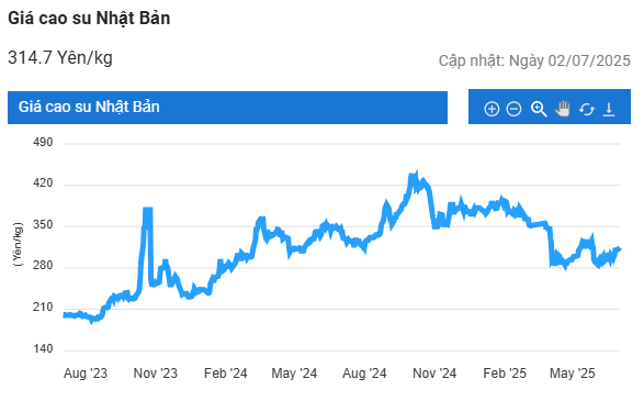 Kết thúc phiên giao dịch 2/7, giá cao su kỳ hạn tháng 7 trên Sàn OSE ở Nhật Bản đi ngang mức 312,9 yen/kg. Ở Trung Quốc, giá cao su kỳ hạn tháng 7 trên Sàn Thượng Hải (SHFE) tăng 0,7% (95 nhân dân tệ) lên mức 14.005 nhân dân tệ/tấn. Tại Thái Lan, giá cao su kỳ hạn tháng 8 tăng 0,2% (0,12 baht) lên mức 73,38 baht/kg.
