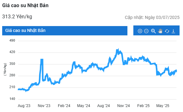 Kết thúc phiên giao dịch 3/7, giá cao su kỳ hạn tháng 7 trên Sàn OSE ở Nhật Bản giảm 0,7% (2,2 yen) về mức 310,7 yen/kg. Ở Trung Quốc, giá cao su kỳ hạn tháng 7 trên Sàn Thượng Hải (SHFE) giảm 0,4% (55 nhân dân tệ) về mức 13.945 nhân dân tệ/tấn. Tại Thái Lan, giá cao su kỳ hạn tháng 8 giảm nhẹ 0,02 baht về mức 73,36 baht/kg.