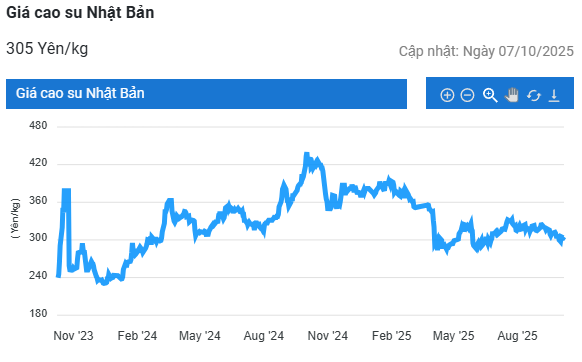Kết thúc phiên giao dịch 7/10, tại Thái Lan, giá cao su kỳ hạn tháng 10 tăng 1% (0,69 baht) lên mức 67,37 baht/kg. Tại thị trường Nhật Bản (OSE), giá cao su đi ngang mức 300,3 yen/kg.