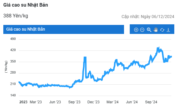 Trong phiên giao dịch ngày 9/12, giá cao su RSS 3 giao tháng 3/2025 tại Sở Giao dịch Osaka (OSE) Nhật Bản giảm mạnh 1,9% (7 yen/kg) so với cuối tuần trước, xuống còn 370,9 yen/kg,.