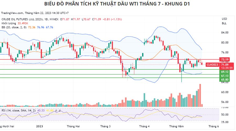 Về mặt kỹ thuật, giá dầu liên tục kiểm nghiệm thất bại cạnh giữa của Bollinger Band. Chỉ số RSI và khối lượng giao dịch các phiên gần đây đều cho thấy sức mua rất yếu, nên kịch bản giá giảm trong hôm nay đang có xác suất xảy ra cao hơn. Nhà đầu tư có thể mở vị thế bán trong khoảng 71,3 – 71,5 USD, với kỳ vọng chốt lời ở mức 70,2 USD. Cắt lỗ ở mức 71,9 USD.