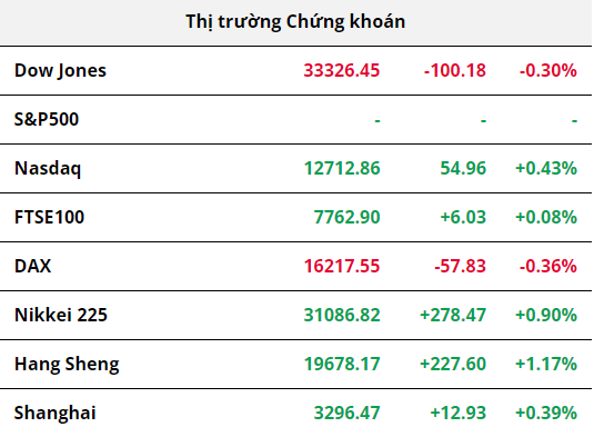 Thị trường chứng khoán Mỹ diến biến trái chiều vào đầu phiên khi các nhà đầu tư chờ đợi cuộc đàm phán về nợ Chính phủ Mỹ. Vào tối ngày 22/05, Tổng thống Mỹ Joe Biden và Chủ tịch Hạ viện McCarthy sẽ trực tiếp đàm phán về trần nợ sau cuộc gặp mặt thất bại của các đàm phán viên vào ngày 19/05, cuộc điện đàm trước đó vào ngày 21/05 cả 2 bên đều cho thấy sự tích cực trong việc đi đến một thỏa thuận. Ngoài ra, các quan điểm “diều hâu” của các quan chức Cục Dự trữ Liên bang Mỹ (Fed) gây áp lực lên thị trường chứng khoán Mỹ. Về phía doanh nghiệp, cổ phiếu của Micron Technology đã giảm gần 4% sau khi Trung Quốc cấm một số các công ty tại quốc gia này sử dụng chịp của Micron. Đồng thời, các cổ phiếu có vốn hóa lớn như Apple giảm gần 1% khi quỹ Loop hạ tỷ trọng và Meta cũng chịu áp lực sau khi công ty bị các cơ quan quản lý Châu Âu phạt.