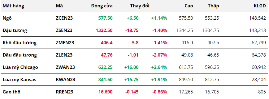 Dù vậy, cơ quan này cho biết, nếu khối lượng trung bình hàng ngày được duy trì đến cuối tháng, tổng xuất khẩu của Brazil trong tháng này sẽ tăng lên hơn 15 triệu tấn, vượt qua mức 14,3 triệu tấn được ghi nhận trong tháng 04. Tương tự đậu tương, cả khô đậu và dầu đậu đều suy yếu trong ngày hôm qua. Giá dầu đậu đã giảm hơn 2%, theo diễn biến của dầu cọ, trong bối cảnh triển vọng nguồn cung dầu thực vật nới lỏng hơn.