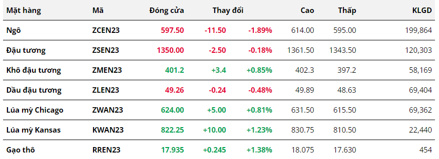 Mặc dù khởi sắc sau khi mở cửa phiên hôm qua trước những lo ngại về thỏa thuận ngũ cốc Biển Đen, nhưng giá ngô hợp đồng tháng 07 đã không thể duy trì đà tăng cho tới cuối phiên. Trong bối cảnh căng thẳng thương mại giữa Mỹ và Mexico tiếp tục leo thang, giá ngô đã phải chịu áp lực bán mạnh và đóng cửa với mức giảm lên tới gần 2%, đồng thời quay về dưới vùng tâm lý 600.