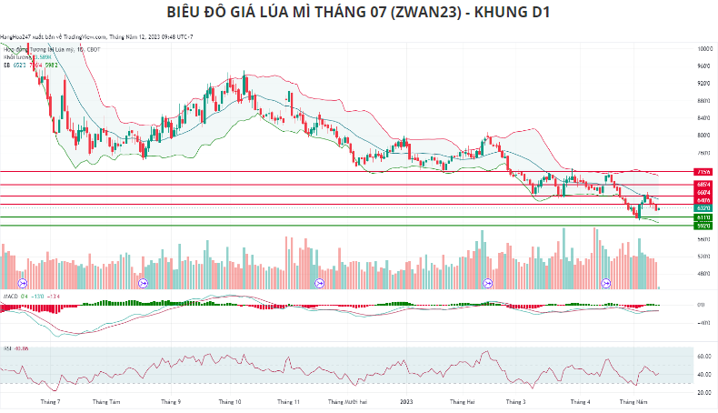 Nhận định: Giá lúa mì đang ghi nhận một nhịp điều chỉnh sau khi giảm mạnh trong 4 phiên trước đó. Vì vậy, đà tăng hiện tại của giá nhiều khả năng sẽ được duy trì cho tới hết phiên, và nếu số liệu sản lượng lúa mì niên vụ 23/24 của Mỹ thấp hơn so với kỳ vọng, giá có thể tăng lên vùng 650