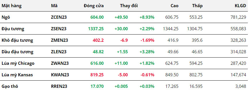 Vụ ngô của Mỹ đã sắp hoàn thành giai đoạn gieo trồng và khung thời tiết này có thể gây ra căng thẳng đối với cây trồng, hạn chế quá trình nảy mầm. Những lo ngại về năng suất ngô Mỹ niên vụ 23/24 có thể sụt giảm do thời tiết bất lợi đã thúc đẩy giá ngô tăng vọt 5 phiên liên tiếp.