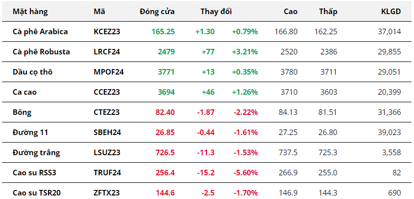 Kết thúc phiên giao dịch 20/10, giá hai mặt hàng cà phê nối dài đà khởi sắc. Trong đó, giá Robusta tiếp tục tăng mạnh 3,21% và nối dài đà tăng sang phiên thứ 7 liên tiếp. Giá Arabica tăng nhẹ gần 1%, giúp giá duy trì mức cao nhất trong gần 2 tháng. Khó khăn trong khâu vận chuyển tại Brazil, kết hợp cũng khan hiếm về nguồn cung tại V iệt Nam đã hỗ trợ giá đi lên.