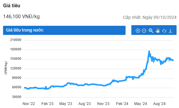 Ghi nhận trong ngày hôm nay (10/10), giá tiêu trong nước tăng mạnh 1.500 – 2.000 đồng/kg so với ngày hôm qua. Hiệp hội Hồ tiêu và cây gia vị Việt Nam (VPSA) cho biết, Việt Nam đã nhập khẩu 2.430 tấn hồ tiêu trong tháng 9 vừa qua, tăng vọt 63% so với tháng trước.