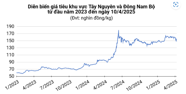 Giá tiêu hôm nay (10/4) tại thị trường trong nước tiếp tục giảm 1.000 đồng/kg, trong khi giá tiêu xuất khẩu lao dốc 500 USD/tấn. Trong một diễn biến mới nhất, Tổng thống Mỹ Donald Trump tuyên bố tạm hoãn áp thuế đối ứng với hầu hết các nước đối tác thương mại trong 90 ngày.