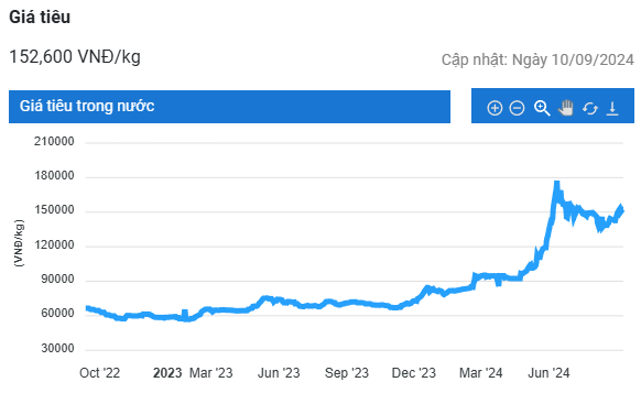 Tại tỉnh Gia Lai, giá tiêu tăng thêm 1.000 đồng/kg lên mức 153.000 đồng/kg. Trong khi đó, giá tiêu tại tỉnh Bình Phước ổn định ở mức 152.000 đồng/kg.