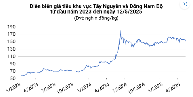 Giá tiêu hôm nay (12/5) tại thị trường trong nước duy trì ổn định ở mức 151.000 – 152.000 đồng/kg. Theo số liệu từ Comexstat, trong 4 tháng đầu năm, Việt Nam đã nhập khẩu 13.505 tấn hồ tiêu từ Brazil, tăng gấp 2,9 lần cùng kỳ năm trước.
