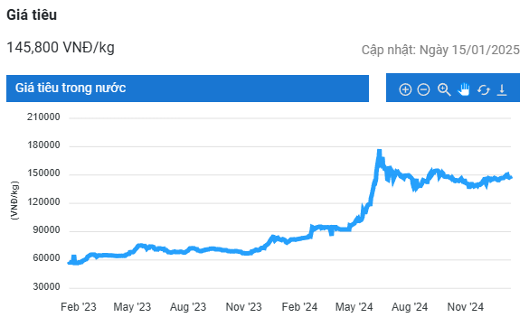 Giá tiêu hôm nay (16/1) giảm 1.000 đồng/kg tại khu vực Đông Nam Bộ và giữ ổn định ở khu vực Tây Nguyên. Những tín hiệu ban đầu cho vụ mùa năm 2025 tại Việt Nam khá tích cực. Qua đó, kỳ vọng vừa được mùa, vừa được giá.